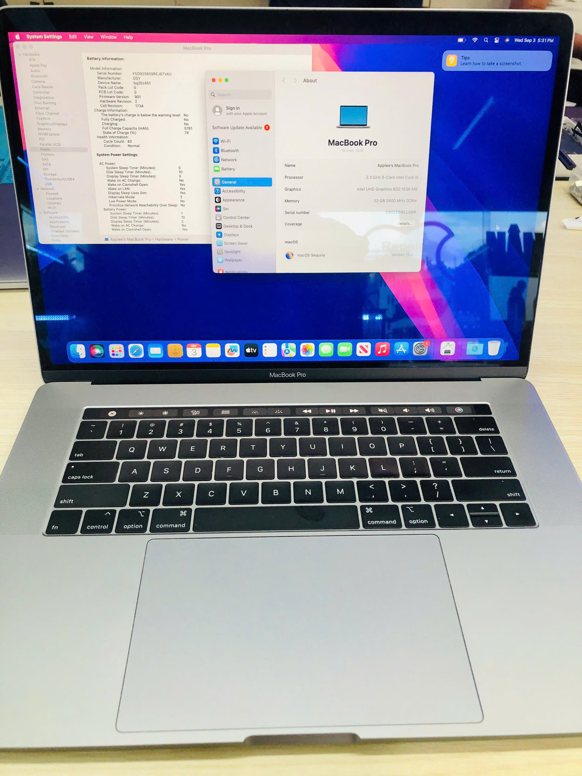 ✔ Bộ xử lý: Intel Core i9 8-core 2.3 GHz (Turbo Boost lên tới 4.8 GHz), với 16 MB L3 cache — dành cho các tác vụ nặng như dựng video, đồ họa, lập trình…